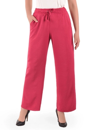 Liczba produktów: 3542Spodnie damskie malinowe z wiskozą – luźny fason, tkanina idealna na sezon wiosna – lato 40124