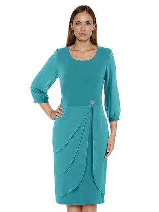 Zielona sukienka z ozdobnie wyszczuplającym wiązaniem 36603