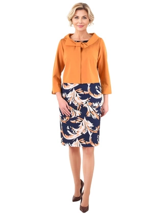Elegancki komplet damski z musztardowym bolerkiem 33310