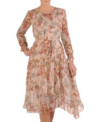 Sukienka z paskiem, jesienna kreacja w wyszczuplającym wzorze 21819.