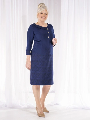 Dwuczęściowa sukienka z ozdobnego żakardu, elegancka kreacja na wesele 21063