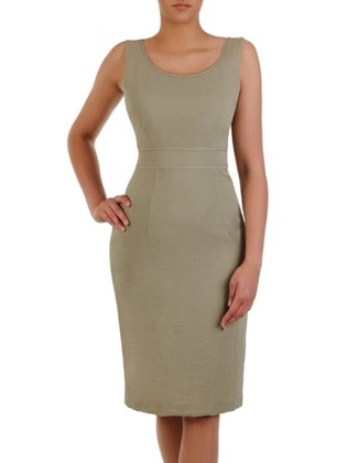 Prosta sukienka z ozdobnymi przeszyciami Beatrika I, modna kreacja bez rękawów