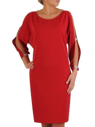 Dzianinowa sukienka z ozdobnymi rozcięciami na rękawach 22810