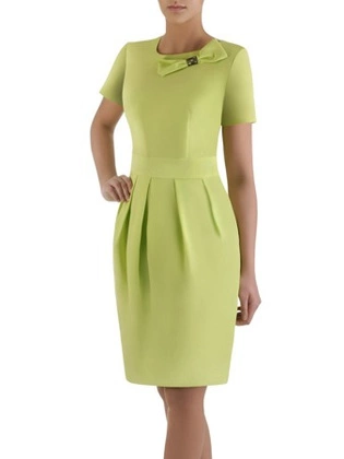 Sukienka tulipanowa Elsa II, pistacjowa kreacja z ozdobnymi marszczeniami.