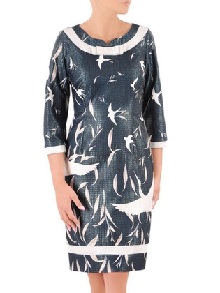 Sukienka wizytowa, prosta kreacja w geometrycznym wzorze 26303