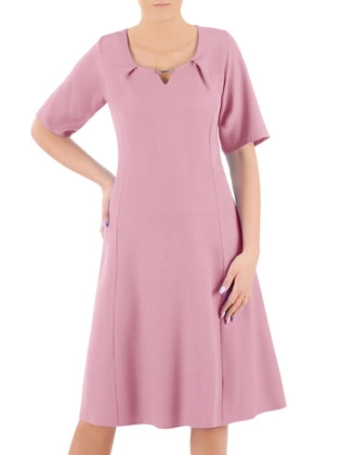 Liliowa sukienka wiosenna z ozdobnym dekoltem 37899