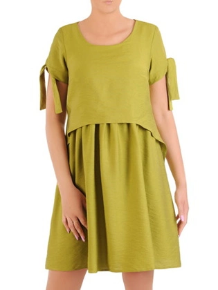 Prosta sukienka z tkaniny, kreacja z modnymi wiązaniami na rękawach 31527