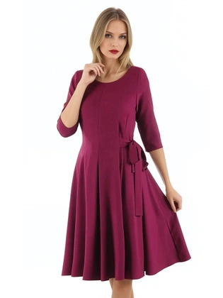 Amarantowa sukienka z szyfonowymi rękawami 30033