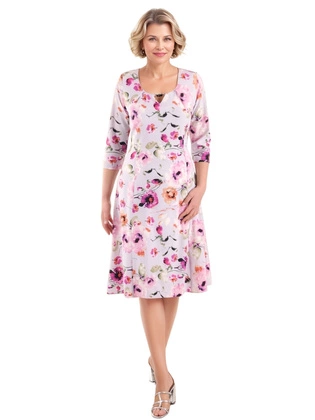 Sukienka damska wiosenna, dzianinowa sukienka midi w kwiaty z ozdobnym dekoltem 39401