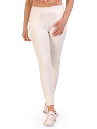 Spodnie damskie, dopasowane, białe rybaczki z gumką w pasie, duże rozmiary 35213