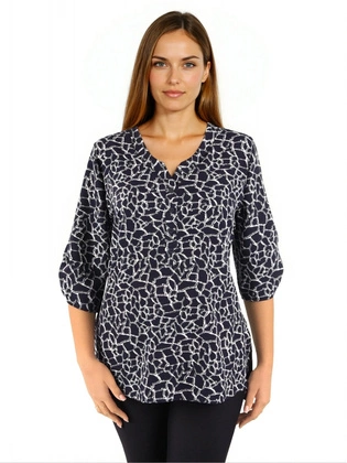 Liczba produktów: 2282Granatowa bluzka plus size z wiskozy – elegancki model z dekoltem w serek i rękawem 3/4 40813