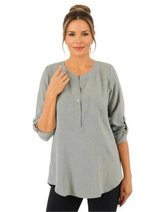 Liczba produktów: 1135Oliwkowa bluzka damska z podwijanymi rękawami 37911