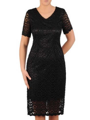 Ołówkowa sukienka z koronki, kreacja z kopertowym dekoltem 22995