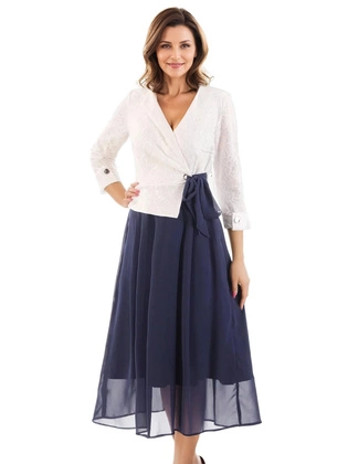 Wizytowa sukienka damska z koronkowym, kopertowym topem 32322