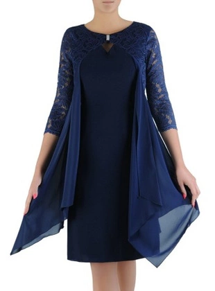 Granatowa sukienka z koronkową wstawką imitującą żakiet 24224
