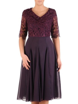 Sukienka wyjściowa, luźna kreacja z ozdobnym dekoltem z koronki 25609