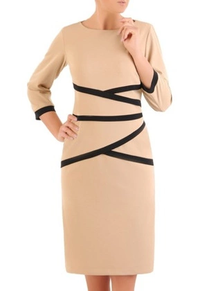 Dzianinowa sukienka z wyszczuplającymi, kontrastowymi paskami 36690