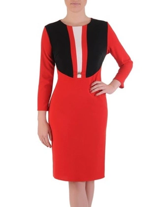 Trapezowa sukienka z dzianiny, kreacja z ozdobnym karczkiem 31247
