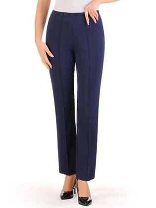 Liczba produktów: 2934Spodnie damskie, granatowe, dzianinowe, proste spodnie z przeszyciami i gumą w pasie, duże rozmiary 27331