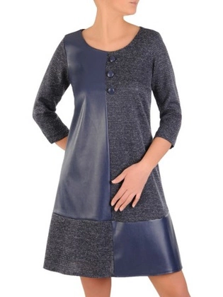 Dzianinowa sukienka ze wstawkami z ekoskóry 34295