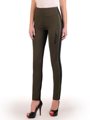 Liczba produktów: 2932Spodnie damskie z wysokim stanem, dzianinowe, dopasowane spodnie z błyszczącymi lampasami 19062