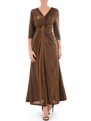 Połyskująca sukienka z asymetryczną, szyfonową narzutką 23125