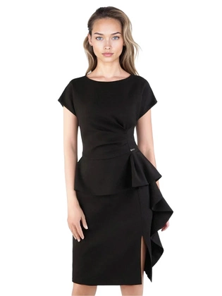 Liczba produktów: 870Czarna sukienka wizytowa z efektowną baskinką 22219