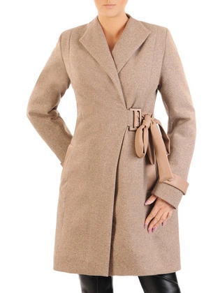 Liczba produktów: 10724Płaszcz damski zimowy, beżowy płaszcz z dodatkiem wełny, wykończenie ekoskóra, boczne kieszenie, duże rozmiary 34131