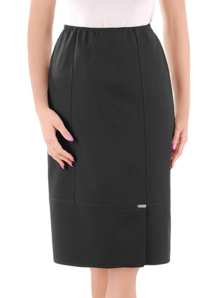 Spódnica plus size, elegancka, prosta spódnica midi z przednim rozcięciem 38110