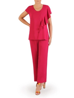 Garnitur damski, amarantowy komplet spodnie z żakietem 33338