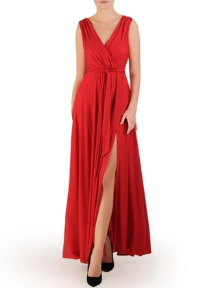 Liczba produktów: 10713Wieczorowa, kopertowa suknia maxi z połyskującego materiału 30834