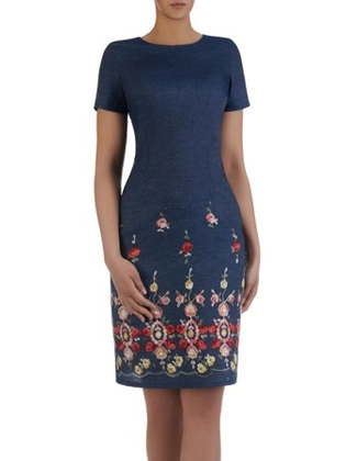 Sukienka damska Klarens XIV, wiosenna kreacja w wyszczuplającym wzorze.