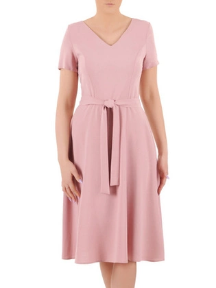 Różowa sukienka damska, elegancka kreacja z kopertowym dekoltem 37703
