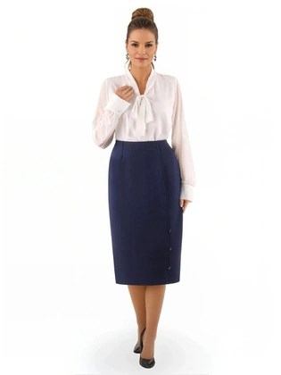Liczba produktów: 468Spódnica damska z wiskozy, granatowa spódnica w prostym fasonie z ozdobnymi guzikami 39220