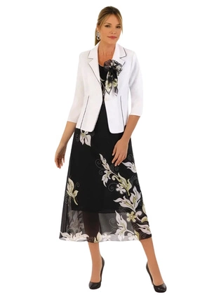 Trzyczęściowy komplet damski, czarna garsonka z koronkową bluzką 30455